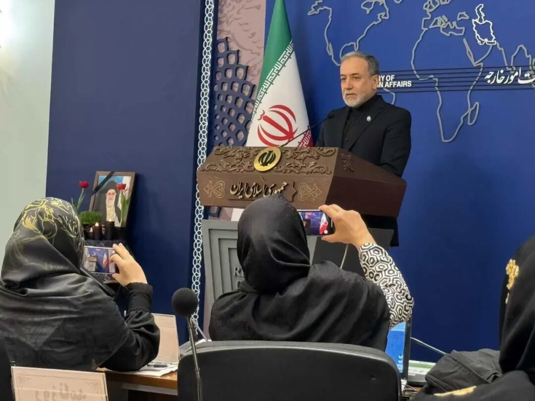 今天外交部发言人发布会现场还请来了不少运动员,集体表达支持国家、谴责袭击。大家一边发言,一边拍摄。可是外面突然传来很大的动静。我看到外长阿拉格奇从门口进来了。实际上此前就有伏笔,巴加埃说让大家先别走,说有个重要人士要来。阿拉格齐上台给大家问好。这是伊朗新年前最后一场外交部新闻发布会,阿拉格齐在新年前和记者致辞,也算是一个新年前的小惊喜了。